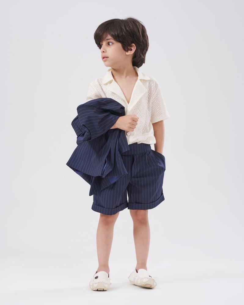 - بدل كاجوال اطفال تحتوي على قميص مخرم بخامة ناعمة يعكس البساطة والجاذبية في الوقت نفسه.